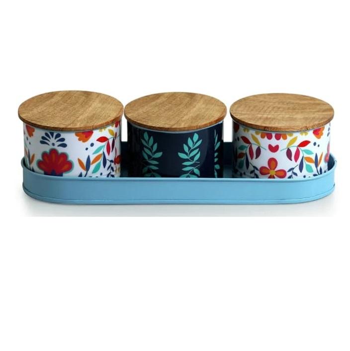 ภาชนะโลหะเคลือบสีดำพร้อมฝาไม้ดีไซน์สวย เหมาะสำหรับเก็บบิสกิต ถั่ว ขนมขบเคี้ยว และผลไม้อบแห้ง
