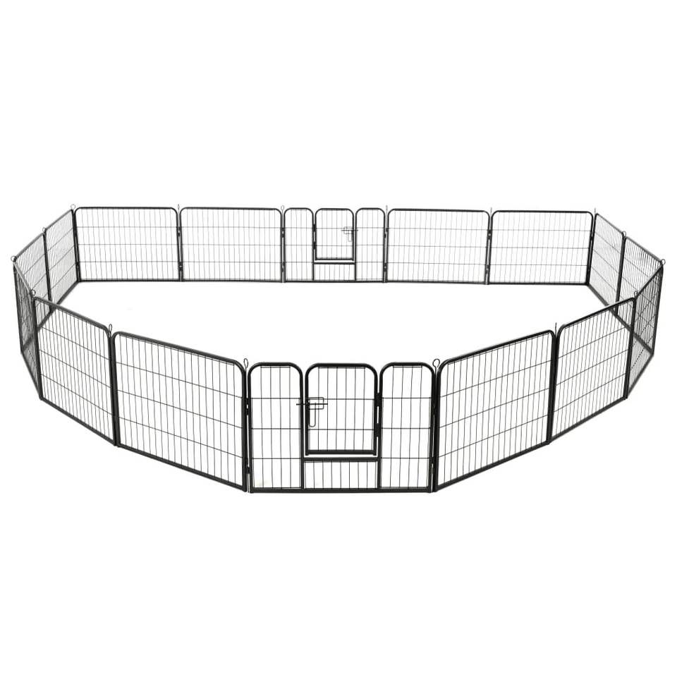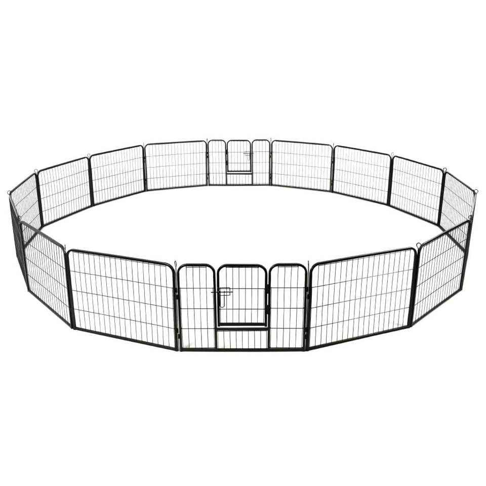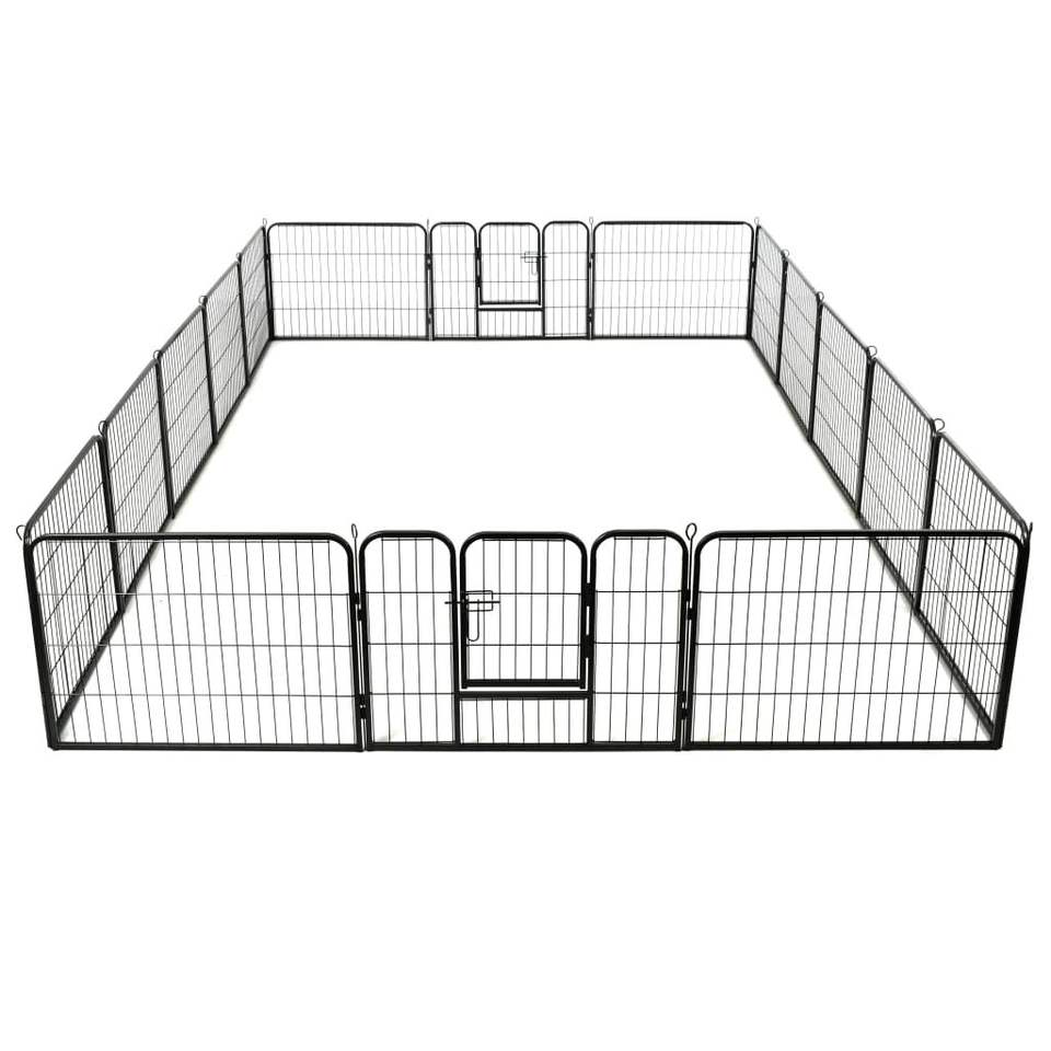 คอกสุนัขเหล็กเคลือบสีดำคุณภาพพรีเมียม ประตูและคอกสำหรับสัตว์เลี้ยง