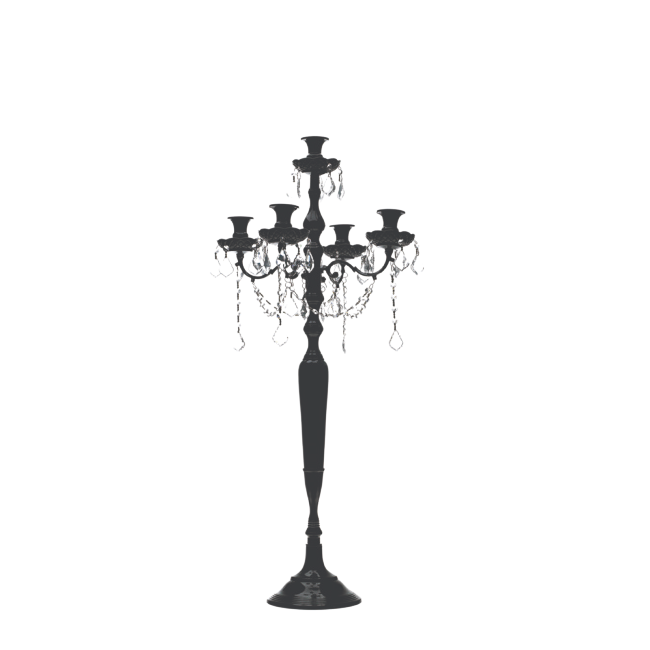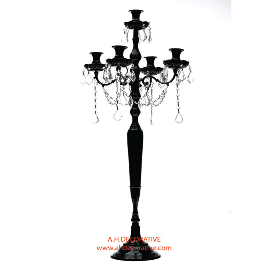 เชิงเทียนทรงสูงเคลือบผงสีดำพร้อมคริสตัลห้อยเชิงเทียนสำหรับตกแต่งงานแต่งงานที่แพงที่สุดทำด้วยมือ