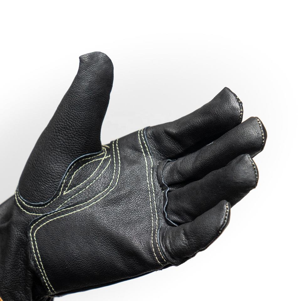 ถุงมือเชื่อม TIG หนังแพะพรีเมียมสีดำ ซับในผ้าฝ้าย สวมใส่สบาย ป้องกันความร้อน ได้รับการรับรองมาตรฐาน EN388/EN420 แบบไม่มีซับใน
