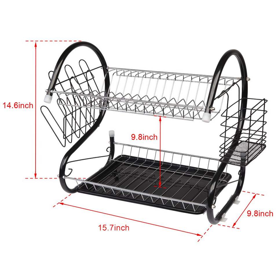 สีดำ RT ชั้นวางของอเนกประสงค์รูปตัวเอสสำหรับเก็บในห้องครัวชั้นคว่ำจานสองชั้นสำหรับชามจานตะเกียบและช้อน