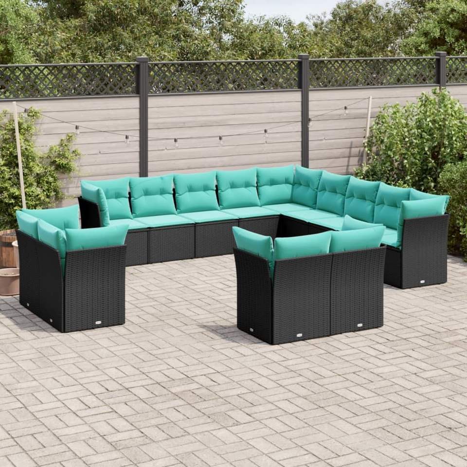 ชุดโซฟาหวายสีดำสำหรับสวน 10 ที่นั่ง พร้อมเบาะรองนั่ง เฟอร์นิเจอร์กลางแจ้งดีไซน์ร่วมสมัยสำหรับใช้ในสวน
