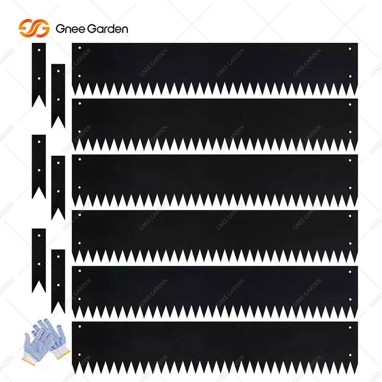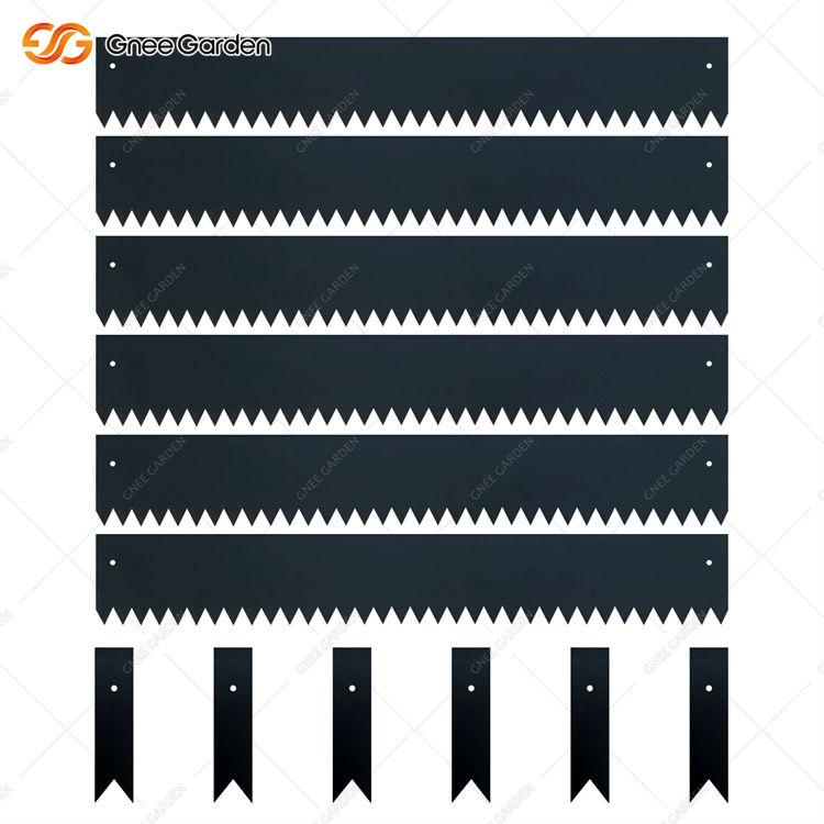 แผ่นเหล็กชุบสังกะสีสีดำรูปสี่เหลี่ยมผืนผ้าขนาด 8 นิ้ว ขอบหยัก สำหรับตกแต่งสวนแบบโมเดิร์น 6 ชิ้น ทนทานต่อสภาพอากาศ ติดตั้งบนพื้น ติดตั้งง่าย