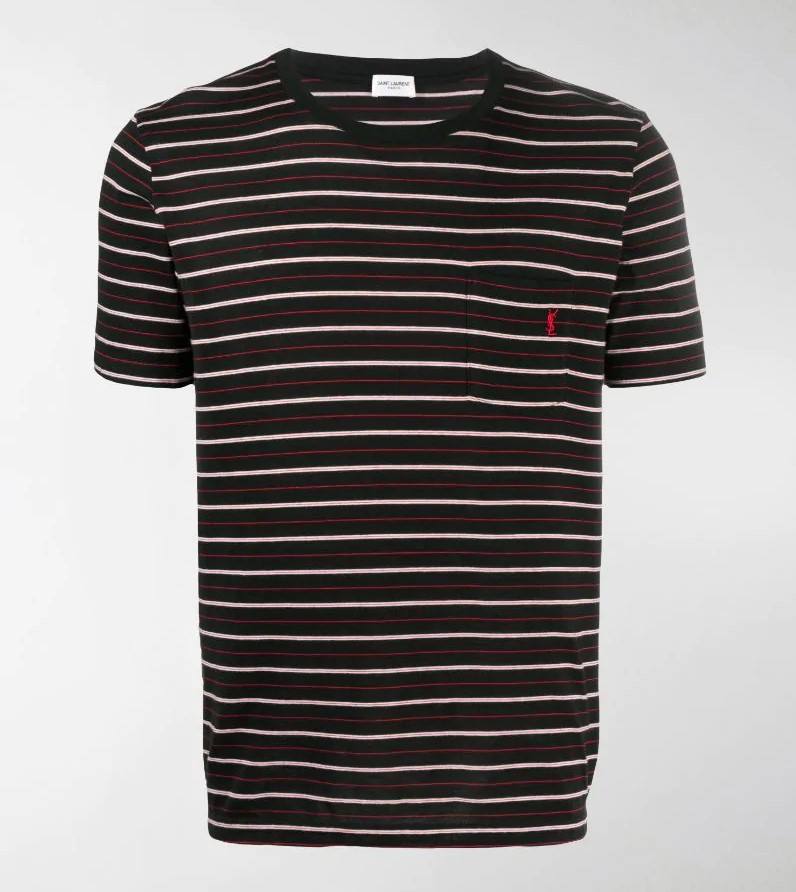เสื้อยืดผ้าฝ้ายและเส้นใยไม้ไผ่ปักลายโลโก้สีดำ/ แดง/สีเบจ