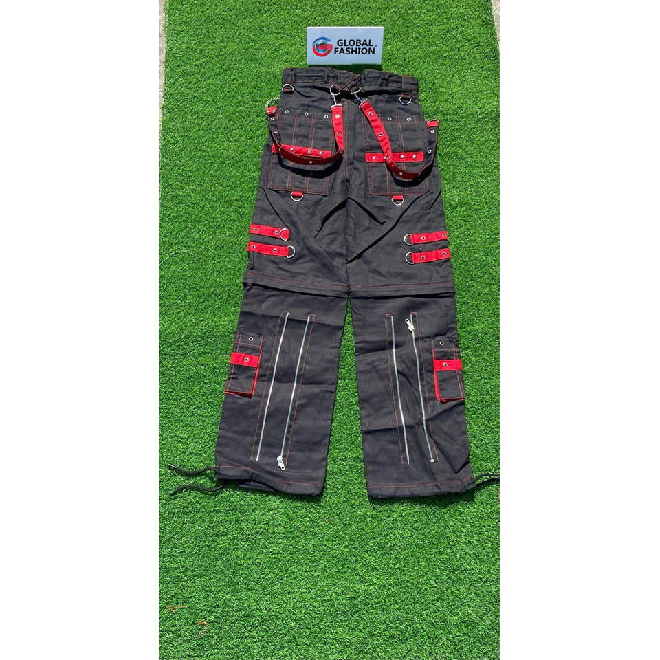 กางเกงขายาวแบบปรับได้ สายสีดำและสีแดง สไตล์พังก์ร็อก กอธ 100% ผ้าฝ้าย กางเกงโกธิค ยูนิเซ็กส์ 2026