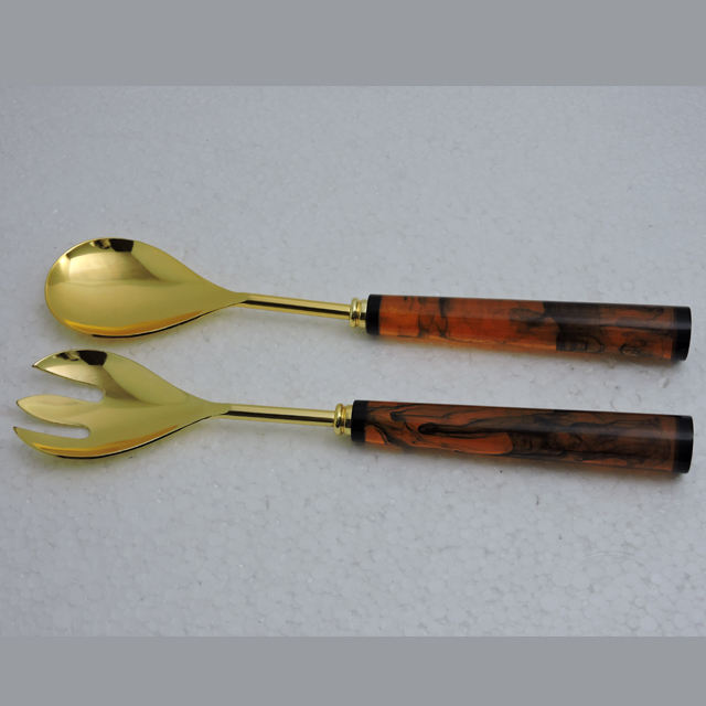 Black Resin Handle & Stainless Steel with Golden Plated Salad Server Kitchen Accessories Kitchen Gadgets