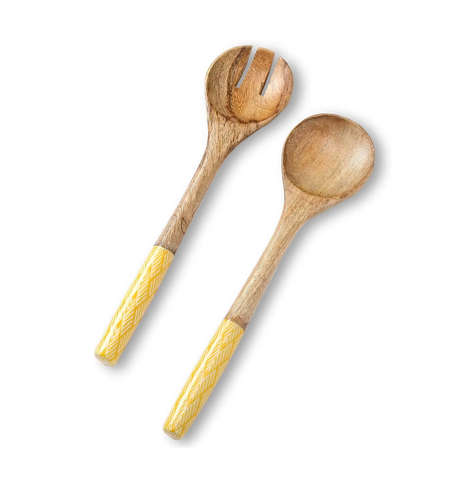 ช้อนไม้อะคาเซียทำจากไม้2ชิ้นเครื่องใช้สำหรับเครื่องครัวและร้านอาหารทำด้วยมือสีดำ