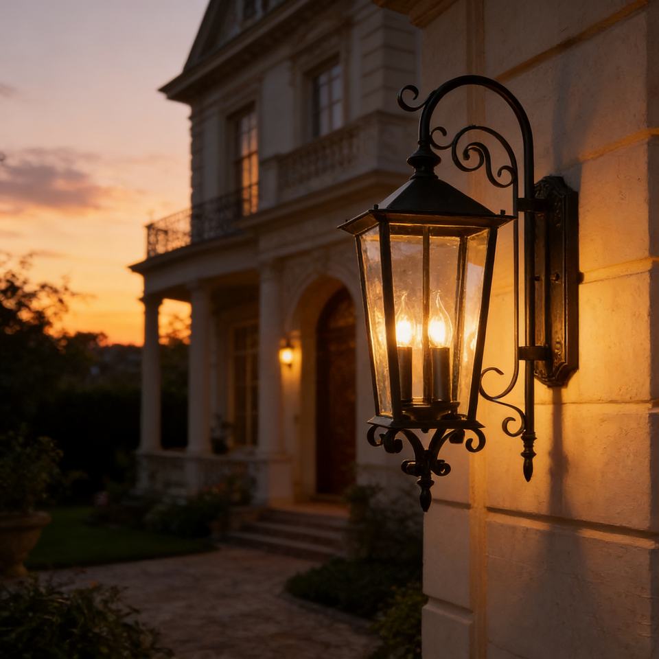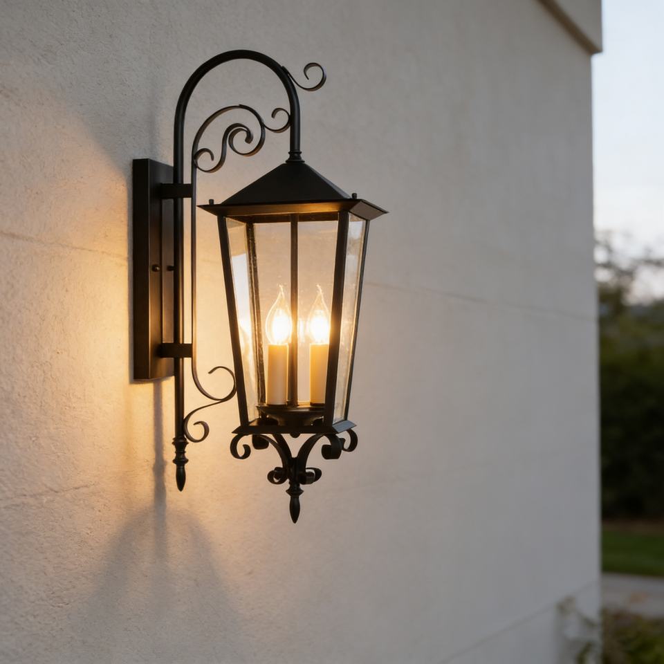 โคมไฟติดผนัง LED กลางแจ้งขนาดใหญ่ทรงสี่เหลี่ยมสีดำ โพลีคาร์บอเนต สไตล์เรโทร กันน้ำ IP65 สำหรับสวน ลานบ้าน และทางเดิน