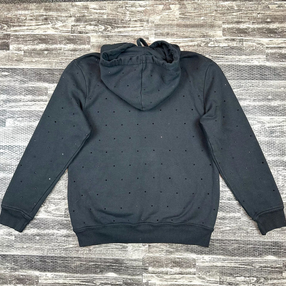 เสื้อฮู้ดดี้ผ้าฟลีซคอตตอน 100% สีดำประดับเพชรเทียม สำหรับทุกเพศ สวมใส่ได้ในฤดูหนาว สไตล์สตรีทแวร์ ระบายอากาศได้ดี แห้งเร็ว ชุด 2 ชิ้น สีพื้น