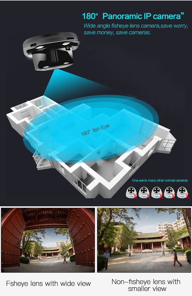 กล้องวงจรปิดไร้สายแบบมินิ ดีไซน์ทรงกลมสีดำ ติดตั้งง่าย รองรับ Smart Net และ P2P มุมมองแบบพาโนรามา