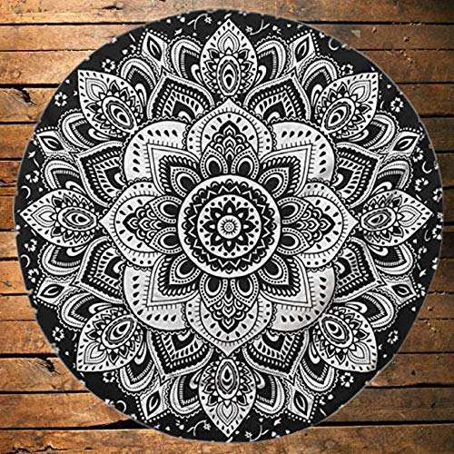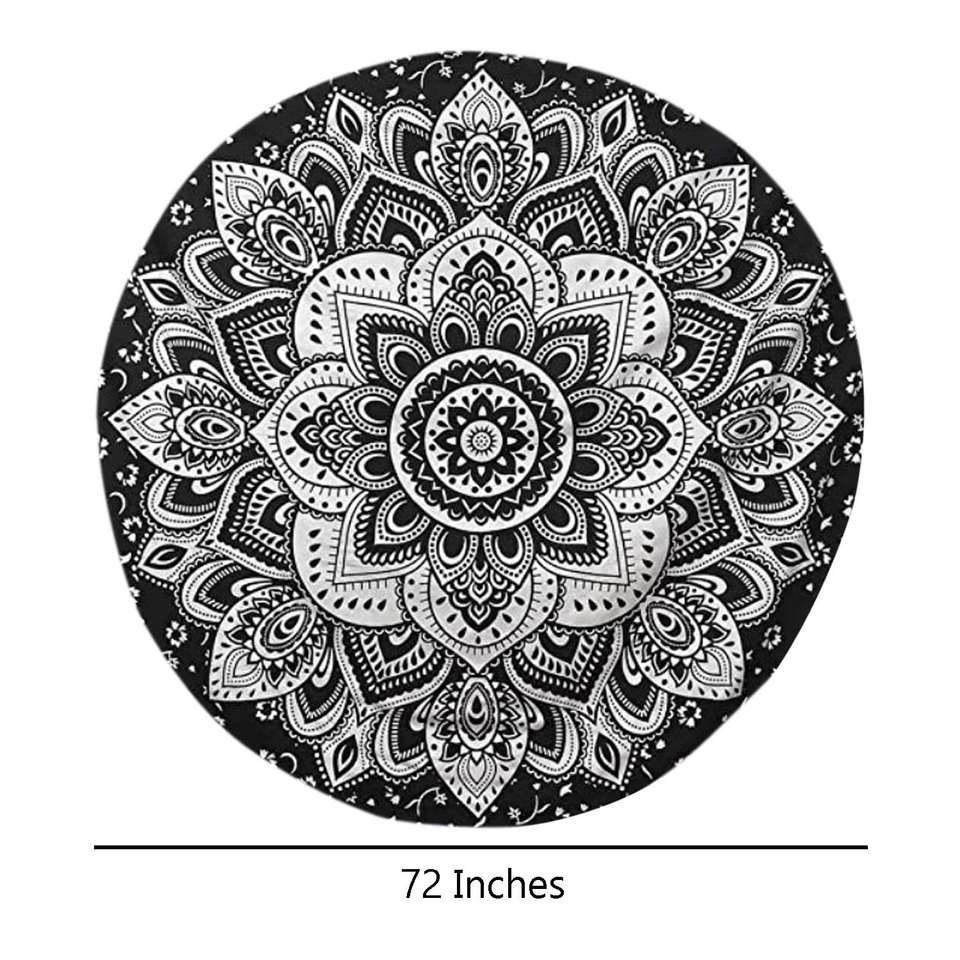 เสื่อปูโต๊ะทรงกลมสีดำ72นิ้ว,พรมผ้าคอตตอนสำหรับตกแต่งเสื่อโยคะแขวนผนังสีเงินสีดำ