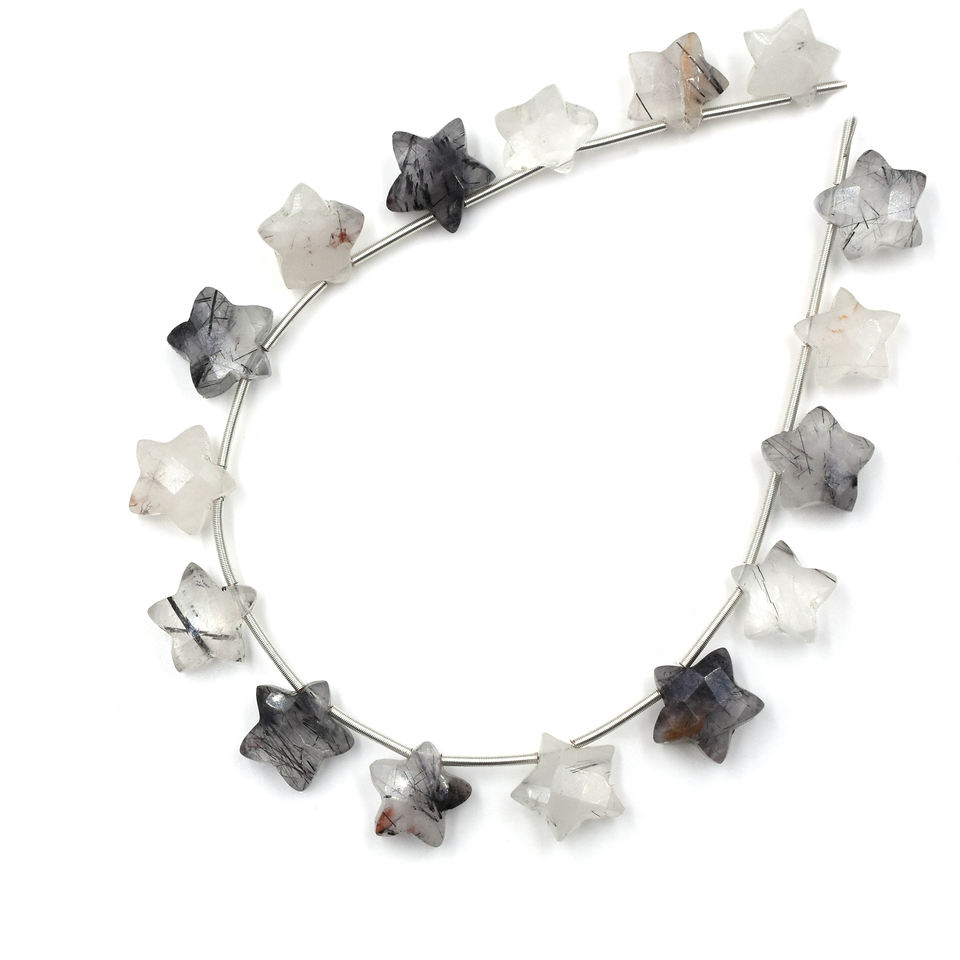 Product Name:Black Rutilated Quartz 10 To 11 MM Faceted Star Shape 16 Beads Strand