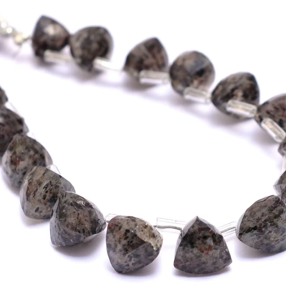 ลูกปัด Briolette ขนาด8มม. ทำจากแร่ควอตซ์สีดำรูไทล์พลอยมีค่ากึ่งสังเคราะห์สีดำธรรมชาติ3D สามเหลี่ยมหลวม