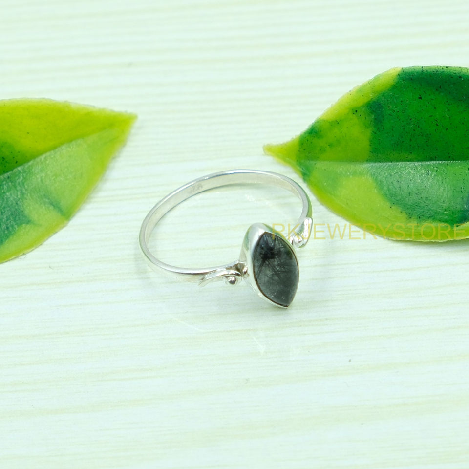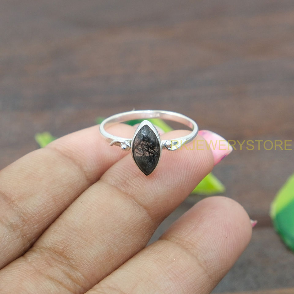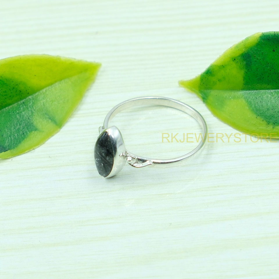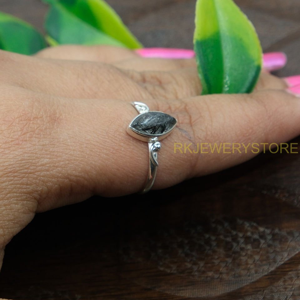 ควอตซ์สีดำรูทิเลเต็ด 925 แหวนเงินสเตอร์ลิงสำหรับผู้หญิงการออกแบบทำด้วยมือแหวนหมั้นงานแต่งงานสำหรับของขวัญวันเกิดคริสต์มาส
