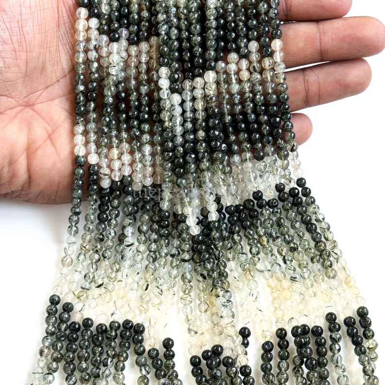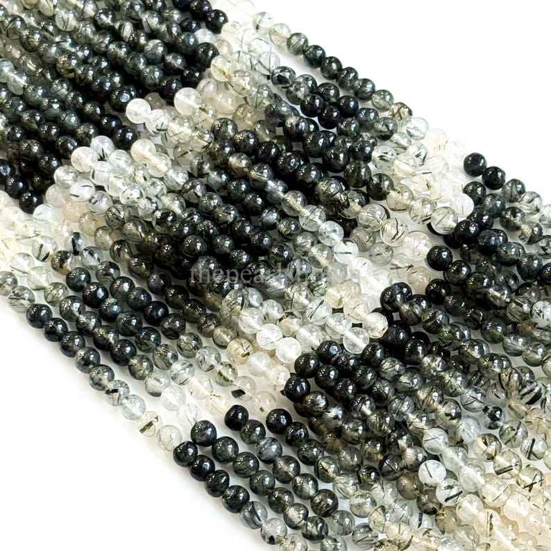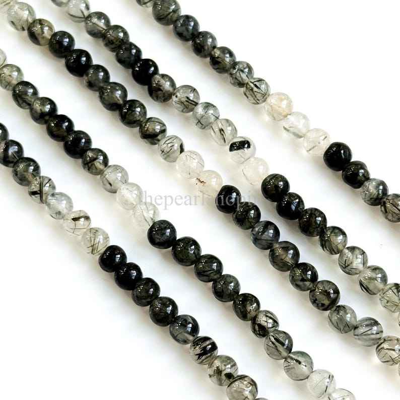 ลูกปัดควอตซ์รูทิเลตสีดำทรงกลมขนาด 5 มม. ลูกปัดควอตซ์รูทิลธรรมชาติ ลูกปัดพลอยรูทิลสีดำผิวเรียบสำหรับทำเครื่องประดับ