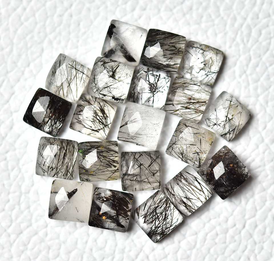 รูปสี่เหลี่ยมจัตุรัสเจียระไนแบบเหลี่ยมเพชรพลอยสีดำเจียระไนแบบเหลี่ยมเพชรพลอยหลวมมีคุณภาพสั่งซื้อขายส่ง