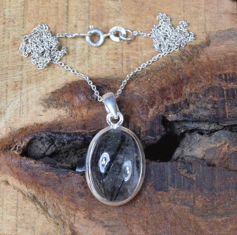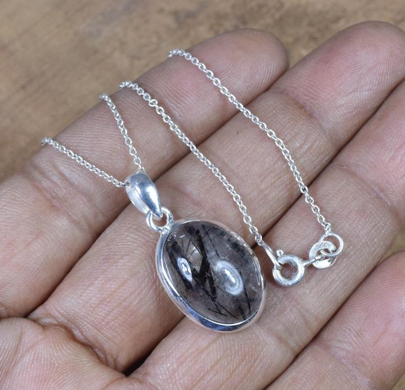 จี้แฟชั่น rutile สีดำ925จี้อัญมณีเงินสเตอร์ลิงเครื่องประดับทำด้วยมือรูปไข่จี้ของขวัญดีไซน์เนอร์สำหรับเธอ