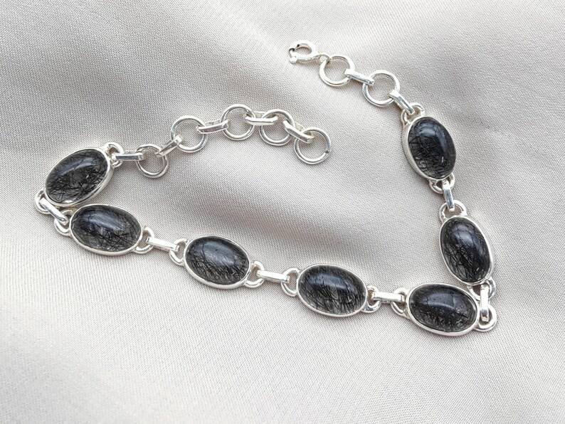 Black Rutile Quartz Tennis Glowing Expansive Bracelet Crafted