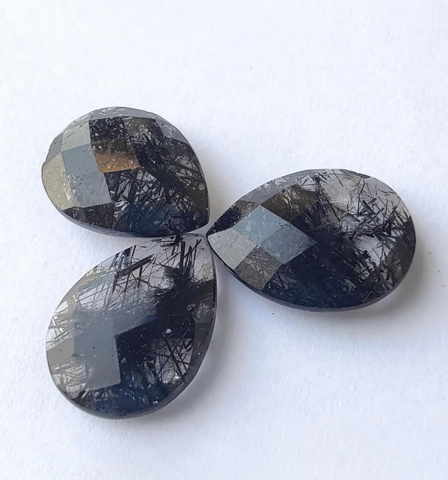 ควอตซ์รูไทล์สีดำทรงบริอเล็ตต์ หินธรรมชาติเจียระไน ขนาดมาตรฐาน สำหรับทำเครื่องประดับ