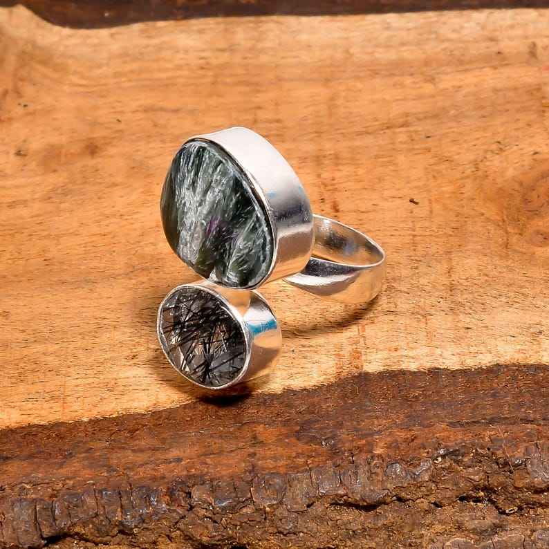 Keyword:Black Rutile Quartz 925 Sliver Made With Black Rutile Quartz Ring