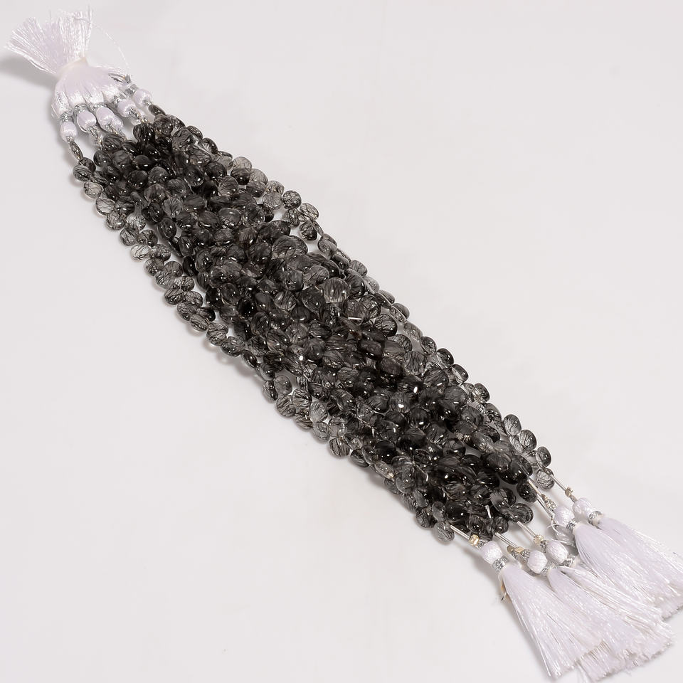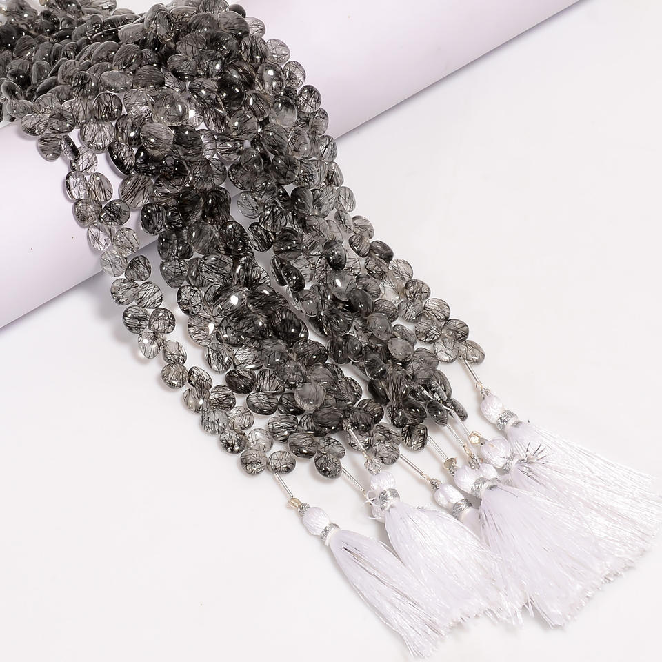 ลูกปัดควอตซ์รูปหัวใจ rutile สีดำพลอยควอตซ์ rutile สีดำลูกปัดเรียบเครื่องประดับทำลูกปัดอัญมณีธรรมชาติ8นิ้ว