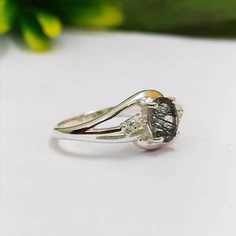 แหวนหินทับทิมสีดำ925แหวนหมั้นแต่งงานเงินสเตอร์ลิงสำหรับผู้หญิงดีไซน์ที่ไม่ซ้ำกันด้วยเพชรวงแข็งเครื่องประดับที่ดี