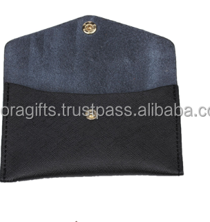 เคสนามบัตรหนัง Saffiano สีดำสำหรับผู้หญิงที่ใส่นามบัตรและที่ใส่บัตรประชาชนแบบปรับแต่งโลโก้ได้
