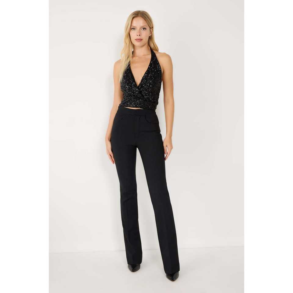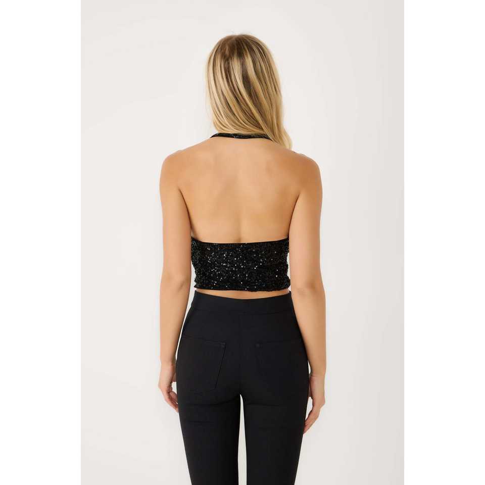 เสื้อผู้หญิงคอวีประดับเลื่อมสีดำด้านหลัง