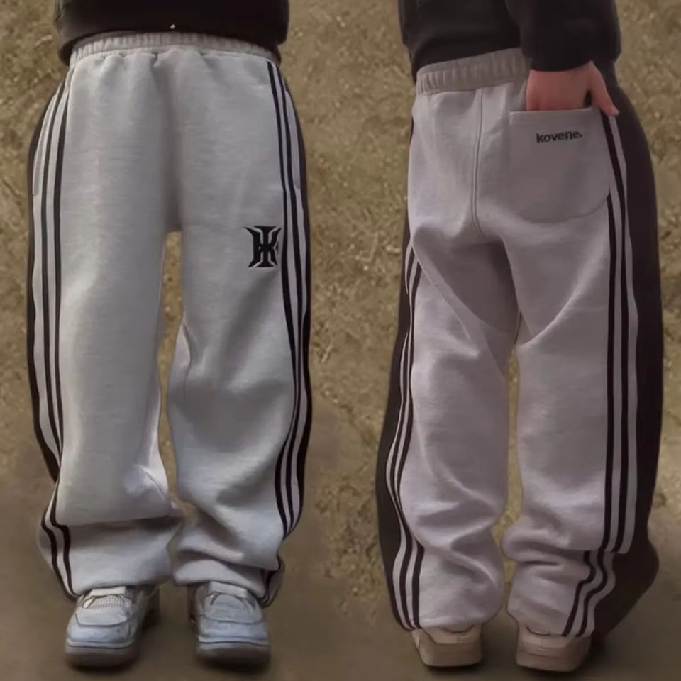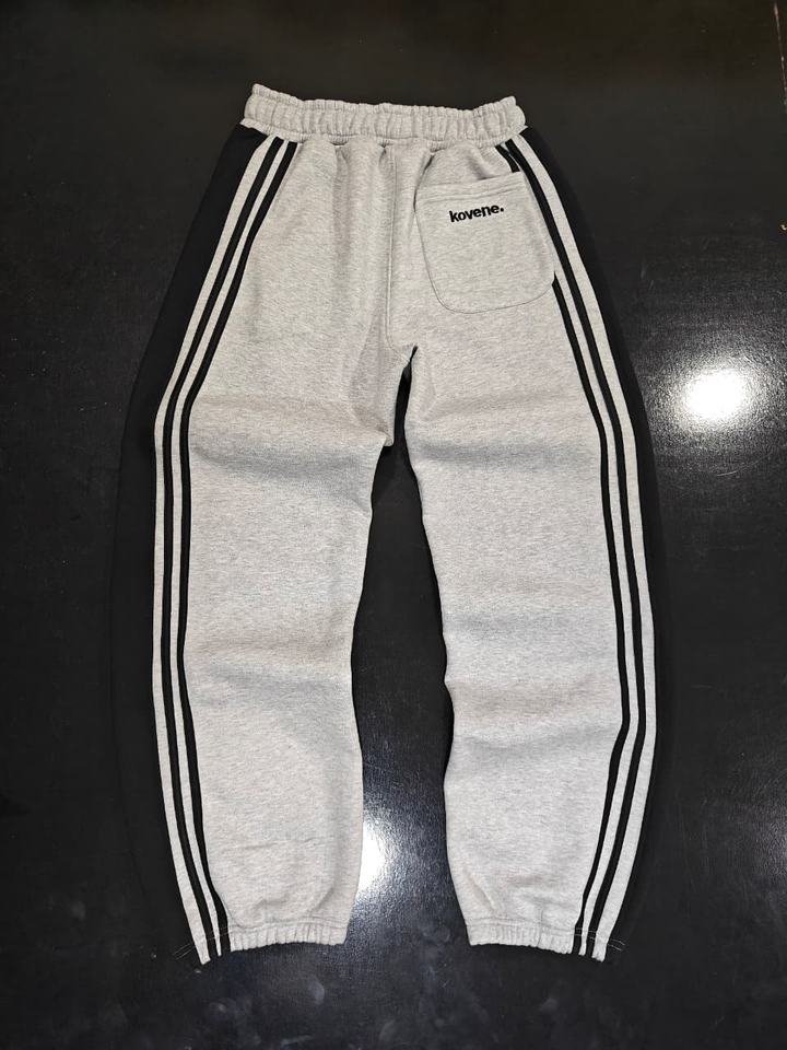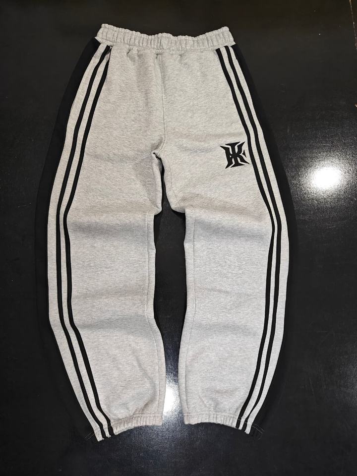 กางเกงจ็อกเกอร์สีเทาไฮเดอร์เกรย์ลายทางด้านข้างสีดำ พร้อมโลโก้ปัก ผ้าฝ้ายฟลีซ 100% ขากว้าง ปลายขาจั๊มพ์ สำหรับผู้ชาย