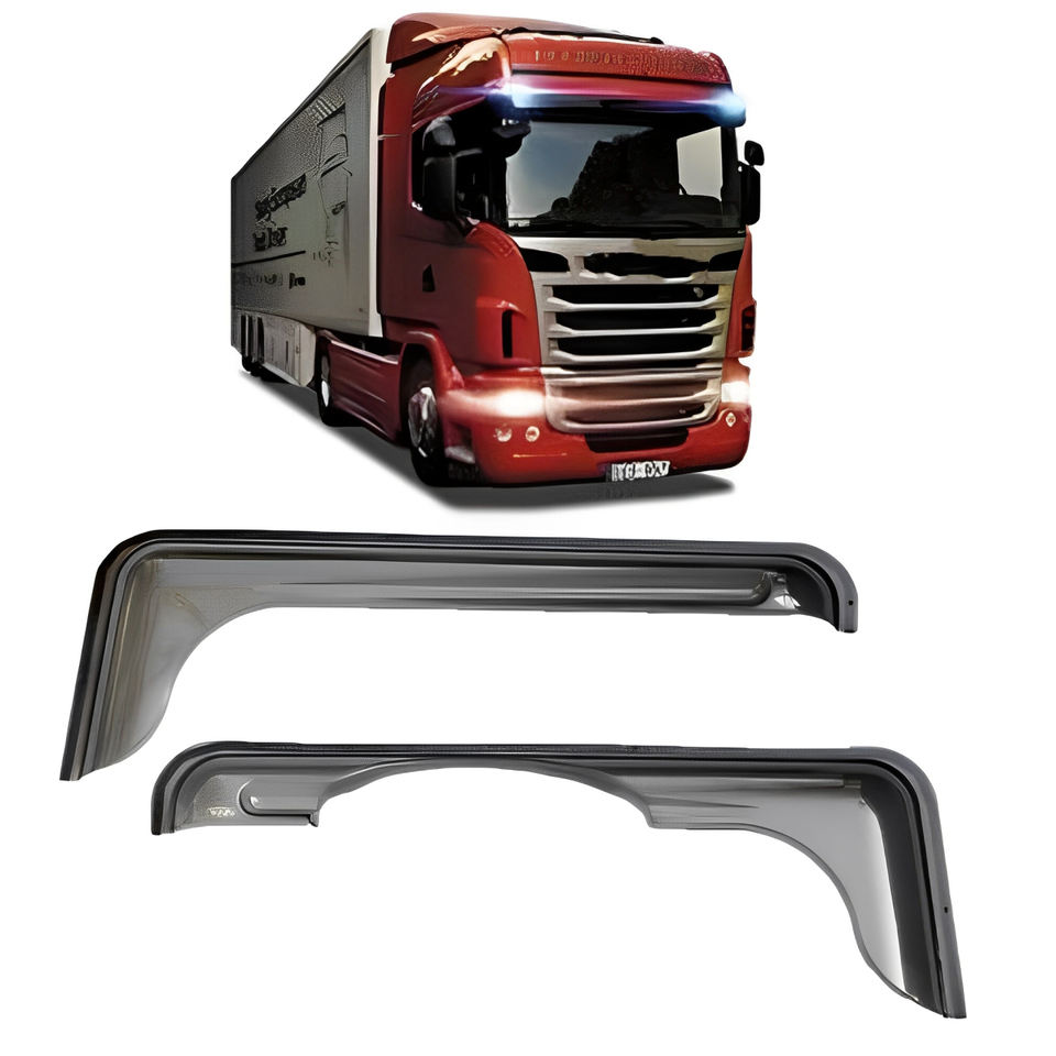 แผ่นบังลมข้างสีดำสำหรับรถบรรทุกสแกนเนีย อาร์ (2004/2016) ป้องกันลม ฝน และแสงแดด อุปกรณ์เสริมรถบรรทุก แพ็ค 2 ชิ้น