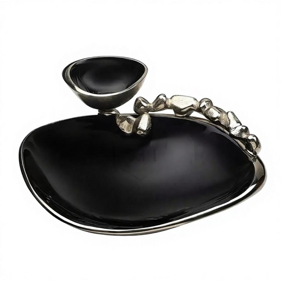 Black Silver Handmade Metal Designer Serving Bowl with Stone Detailing Modern Design for Snack & Chip Dip Dry Fruits Nuts Decor