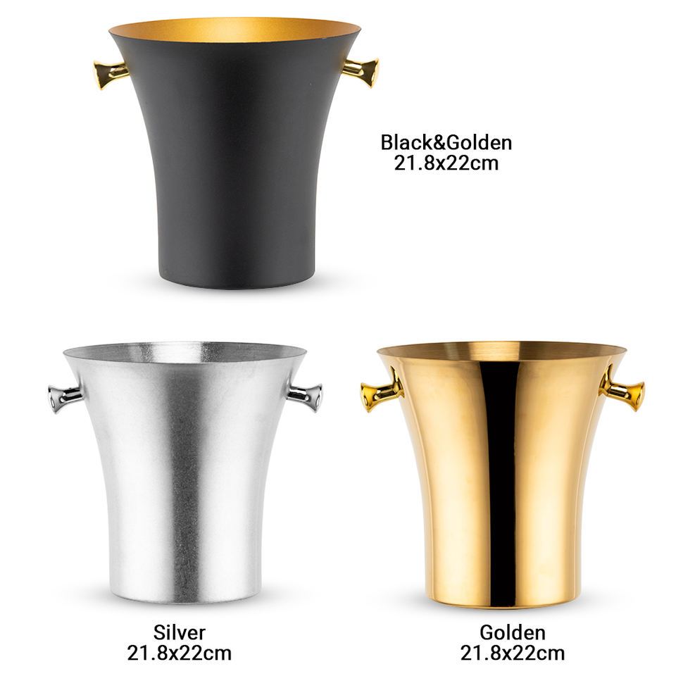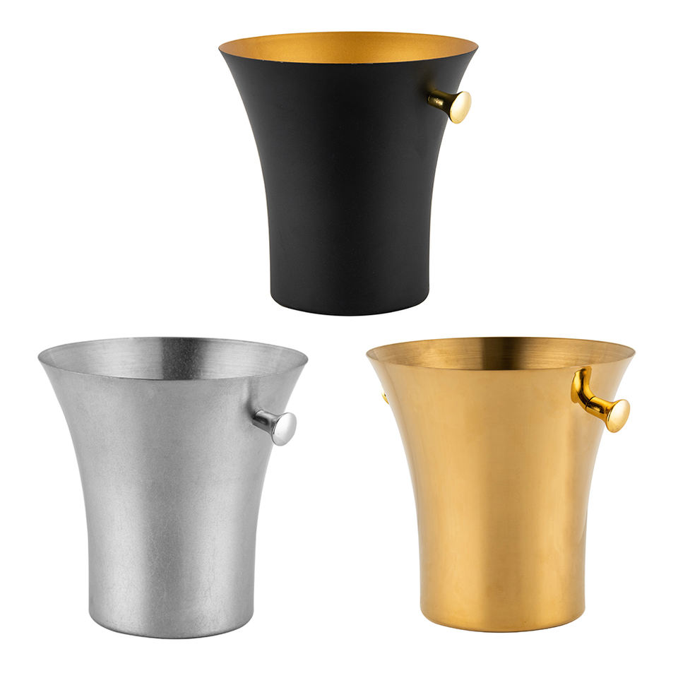 ถังน้ำแข็งสแตนเลสสีเงินสีดำสีทองสีเงินบางเฉียบออกแบบได้เองแชมเปญเบียร์ไวน์ไวน์อ่างสำหรับคลับปาร์ตี้บาร์