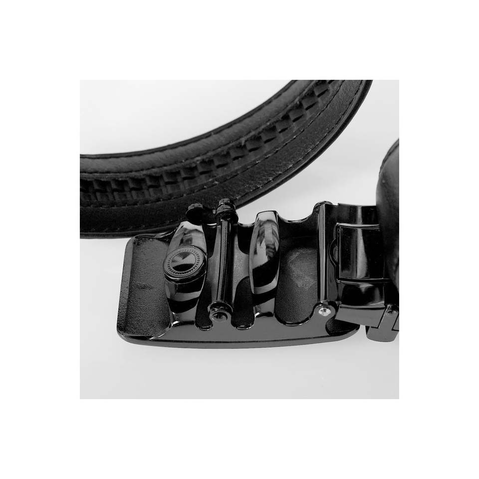 เข็มขัดหนังแท้หัวเข็มขัดสแตนเลสลายสีเงินสีดำปรับขนาดได้100% ราง