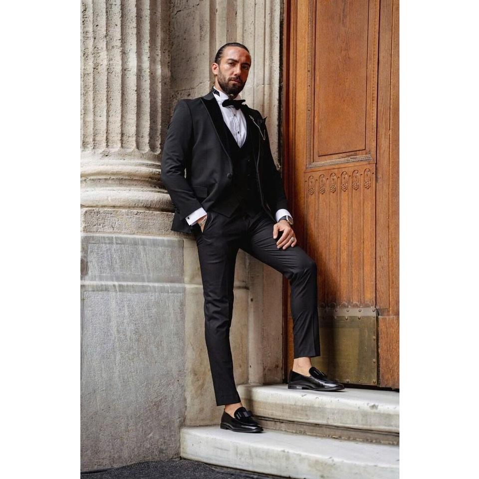 ชื่อผลิตภัณฑ์:ชุดสูทผู้ชายสีดำ3ชิ้นทรงสลิมฟิตกระดุมเม็ดเดียว