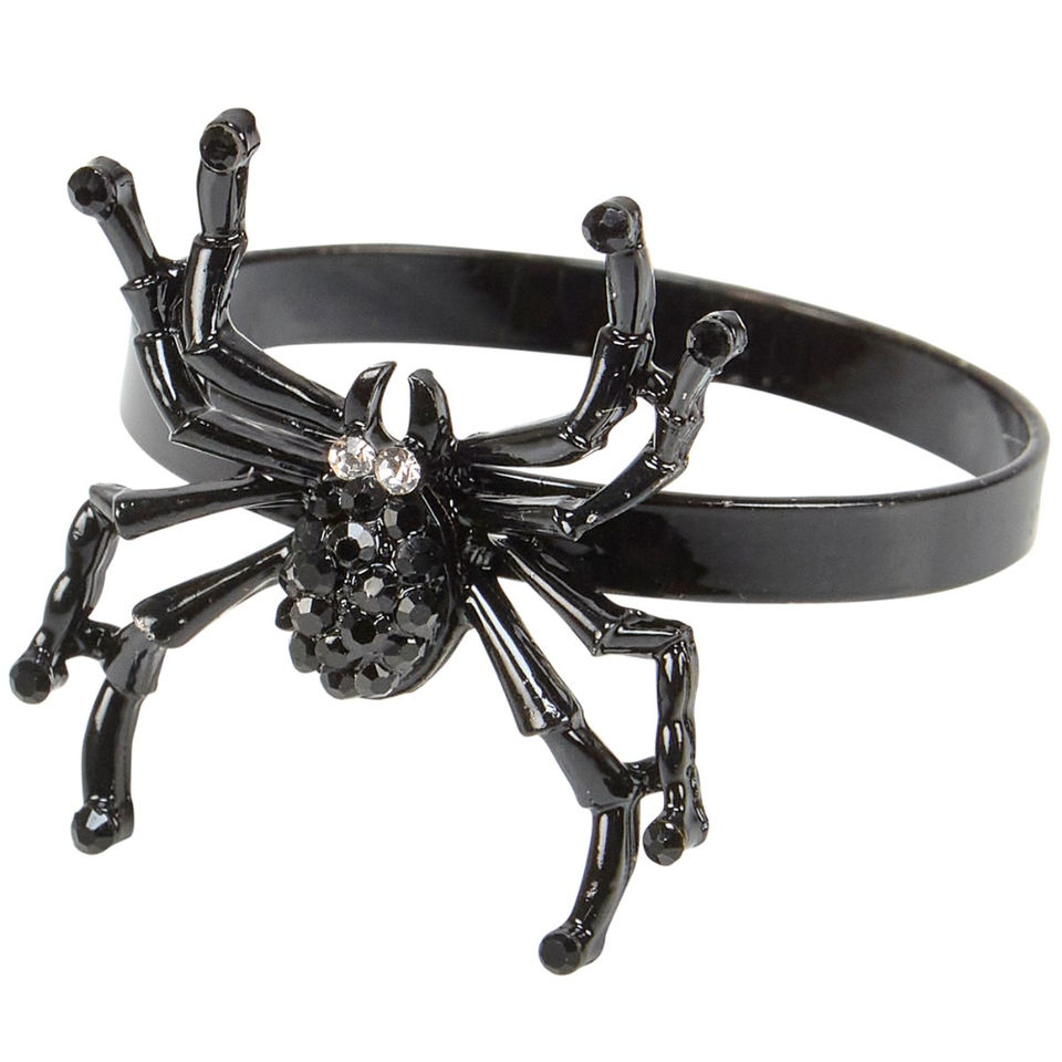แหวนผ้าเช็ดปากแมงมุมสีดำพลอยเทียมฮาโลวีนที่ใส่ของตกแต่งโต๊ะของตกแต่งปาร์ตี้โกธิคอุปกรณ์ตกแต่งบ้านสำหรับงานเลี้ยงอาหารค่ำ