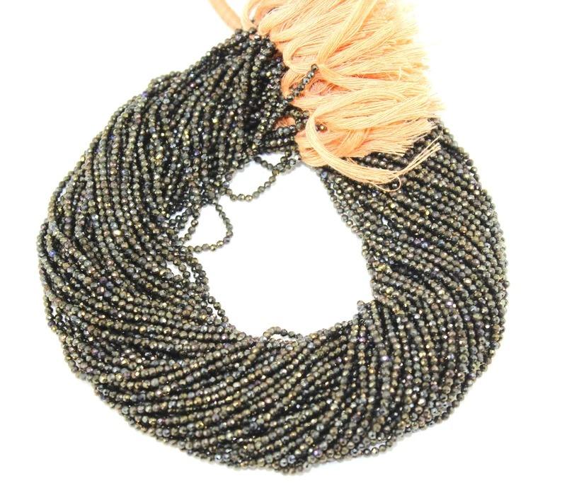 ลูกปัดเคลือบสีทองมิสติกสปิเนลสีดำลูกปัดพลอยเม็ดกลมเหลี่ยมเพชรพลอยสีทองขนาด2มม. ลูกปัดสปิเนลเคลือบสีดำ
