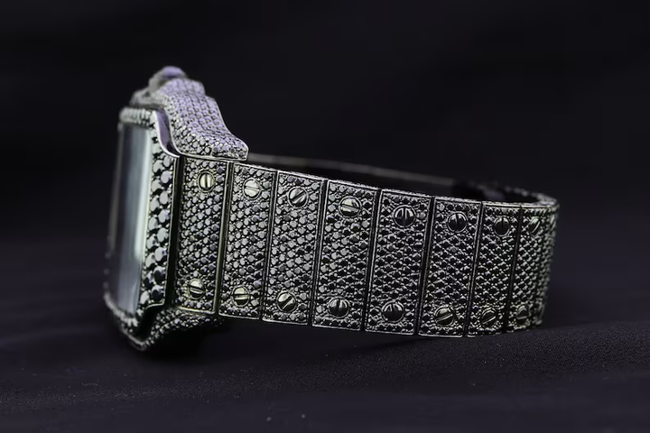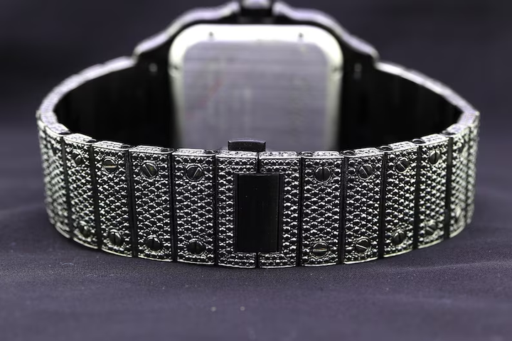 นาฬิกาข้อมือหรูหราสำหรับผู้ชาย สไตล์ฮิปฮอป หน้าปัดทรงสี่เหลี่ยมสีดำ ประดับเพชร VVS และมอสซาไนต์ ตัวเรือนอัลลอยด์ สายสแตนเลสสตีล ระบบอัตโนมัติ