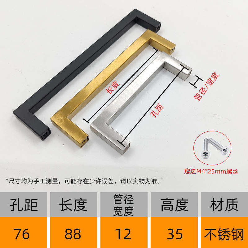 มือจับประตูตู้เสื้อผ้าสแตนเลสทรงสี่เหลี่ยมสีดำ ดีไซน์ทันสมัย ติดตั้งง่าย ใช้ได้กับห้องครัว ห้องน้ำ อพาร์ทเมนท์ ห้างสรรพสินค้า
