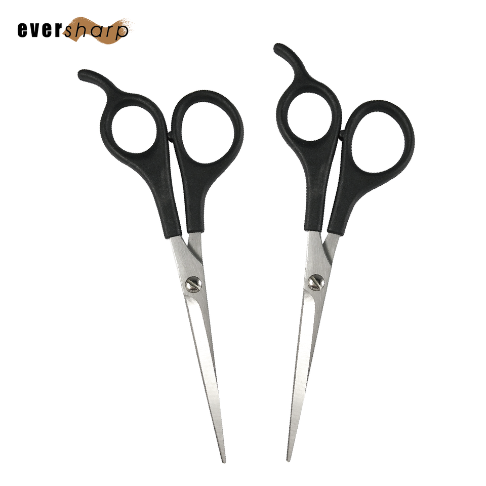 กรรไกรตัดผมสำหรับช่างเสริมสวยมือขวา ใบมีดคมแบบหยัก สแตนเลสสีดำ ด้ามจับพลาสติกขัดเงา