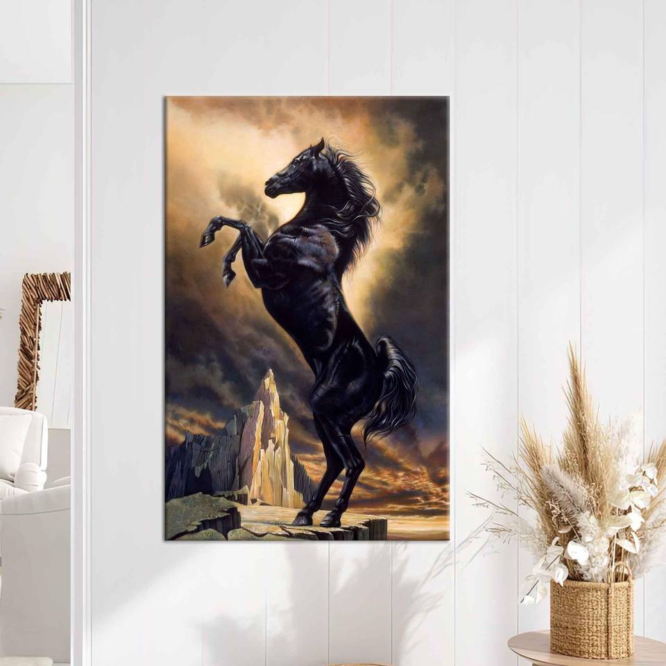 ของขวัญสำหรับคนรักม้าแบล็คสตัลเลียน - งานศิลปะโปสเตอร์พิมพ์บนผ้าใบ หมายเลข:1 ห่อหุ้มอย่างดี
