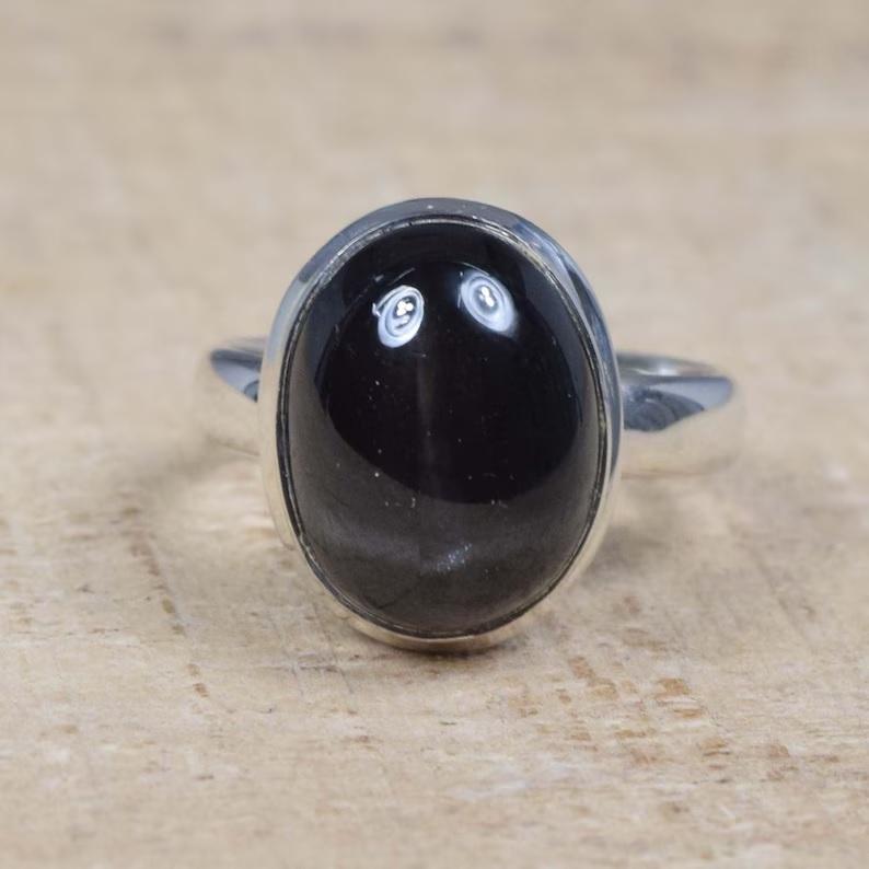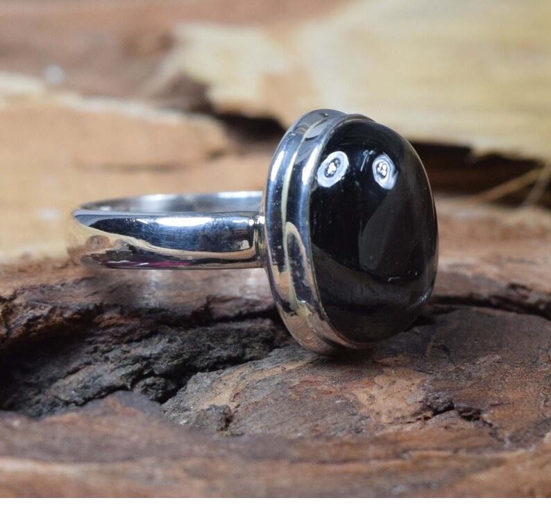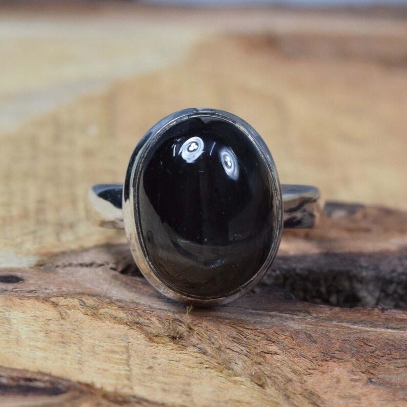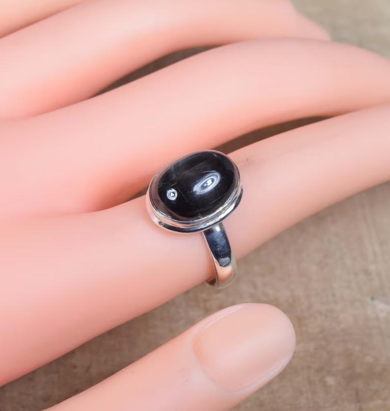 แหวน925ดาวสีดำทำด้วยมือเงินพลอยธรรมชาติรูปวงรีของขวัญสำหรับคริสต์มาส