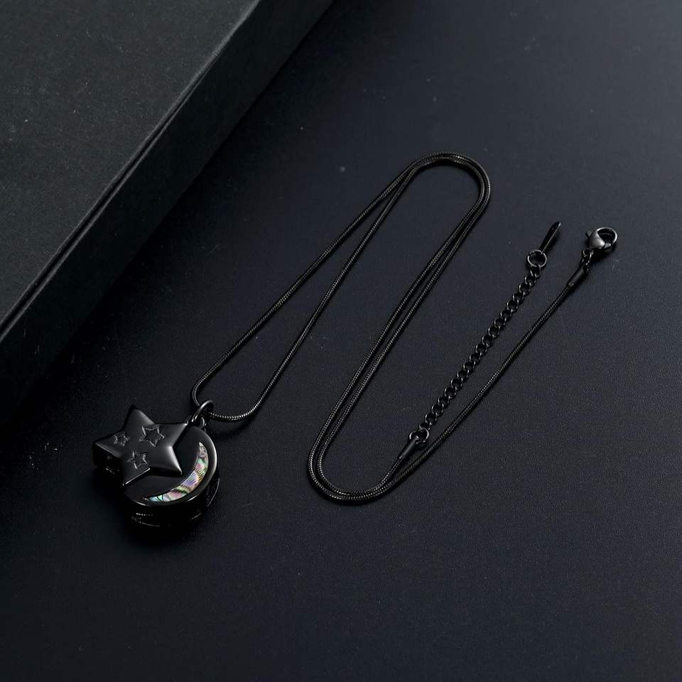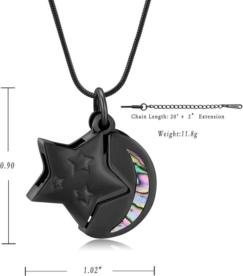 สร้อยคอจี้โลหะรูปดาวพระจันทร์สำหรับใส่เถ้ากระดูก ทำจากสแตนเลส สำหรับผู้ชายและผู้หญิง สามารถปรับแต่งสีและขนาดได้