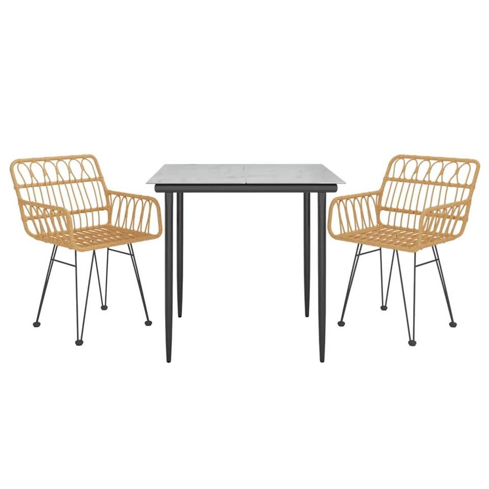 Black Steel Garden Dining Set With Tempered Glass Table And Woven Chairs For Outdoor Use 2 Seater Elegant Design
