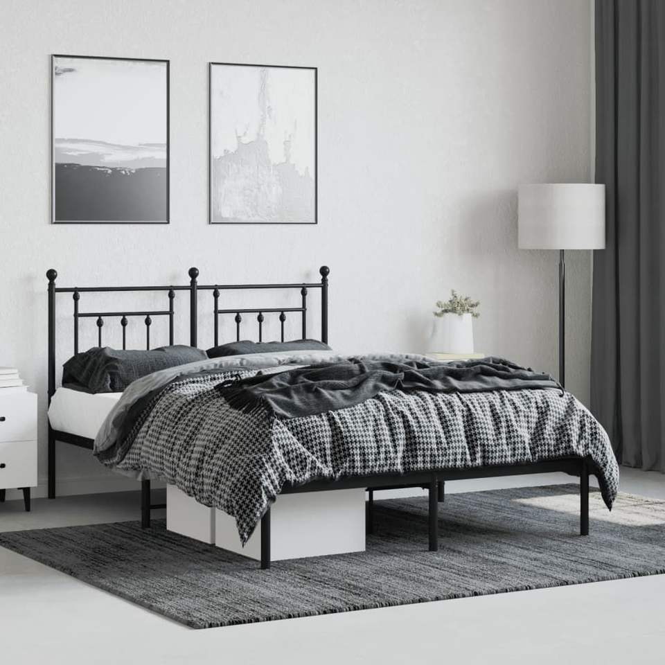 โครงเตียงเหล็กสีดำขนาดคิงไซส์ รูปทรงสี่เหลี่ยมผืนผ้า