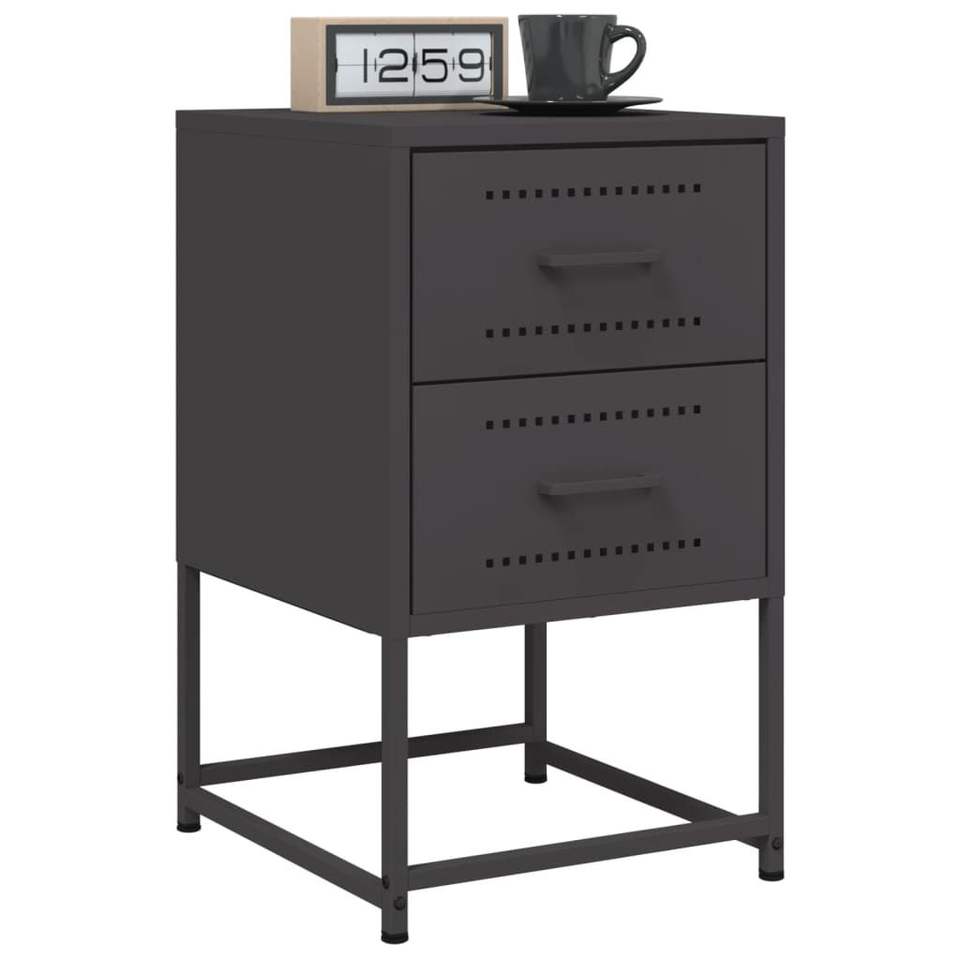 ตู้ข้างเตียงเหล็กสีดำขนาดกลางทรงสี่เหลี่ยมสำหรับเตียงโลหะ