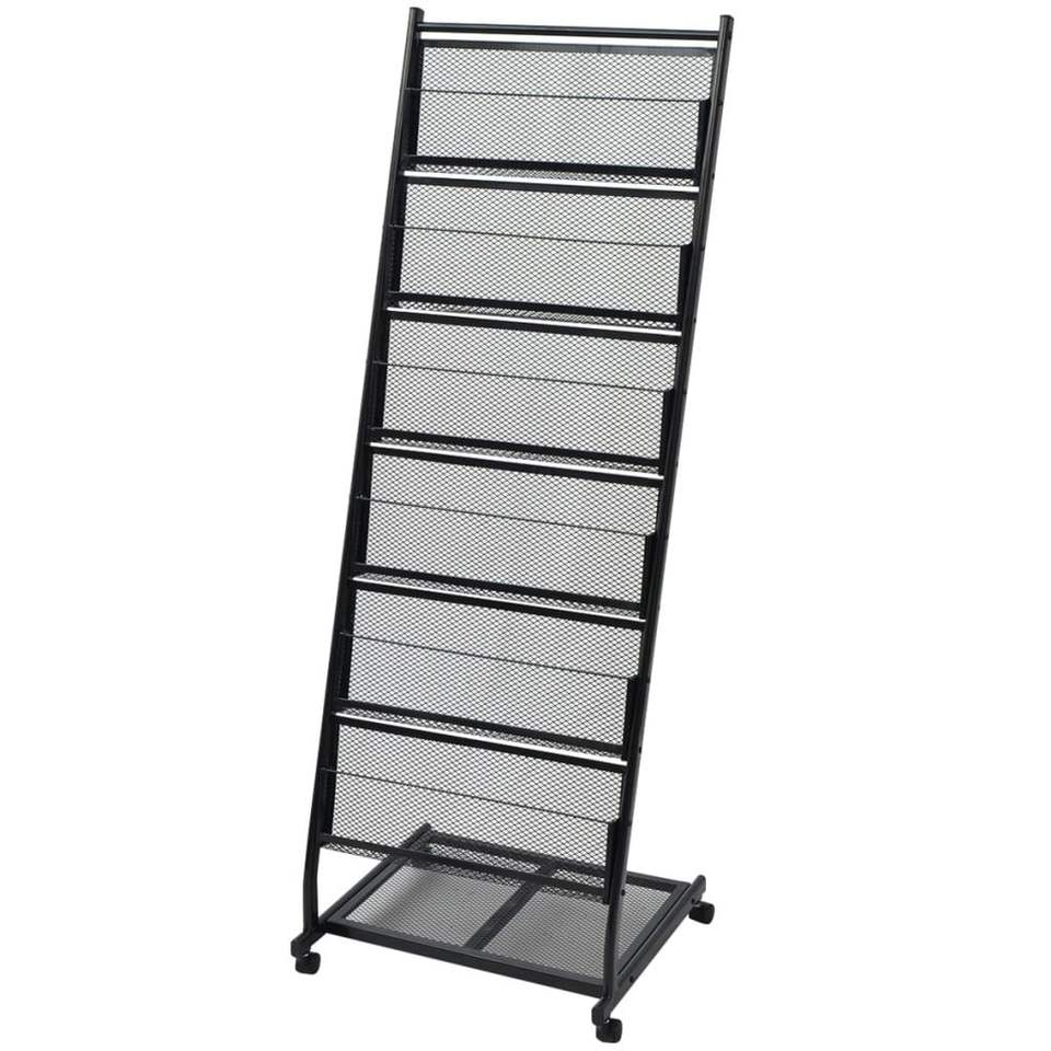 ชั้นวางนิตยสารแบบพกพาขนาดกลางทำจากเหล็กสีดำและ MDF