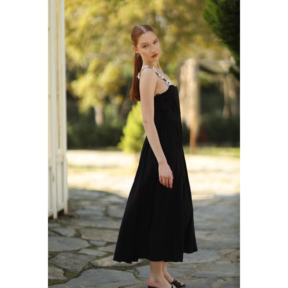 เดรสยาวเดซี่สายเดี่ยวสีดำ