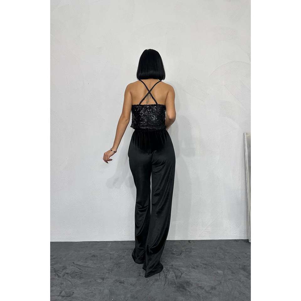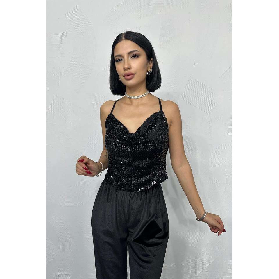 เสื้อสายเดี่ยวสีดำแบบผูกคอ ผ้าซาติน สำหรับงานปาร์ตี้ เซ็กซี่ ยืดหยุ่น คอวี