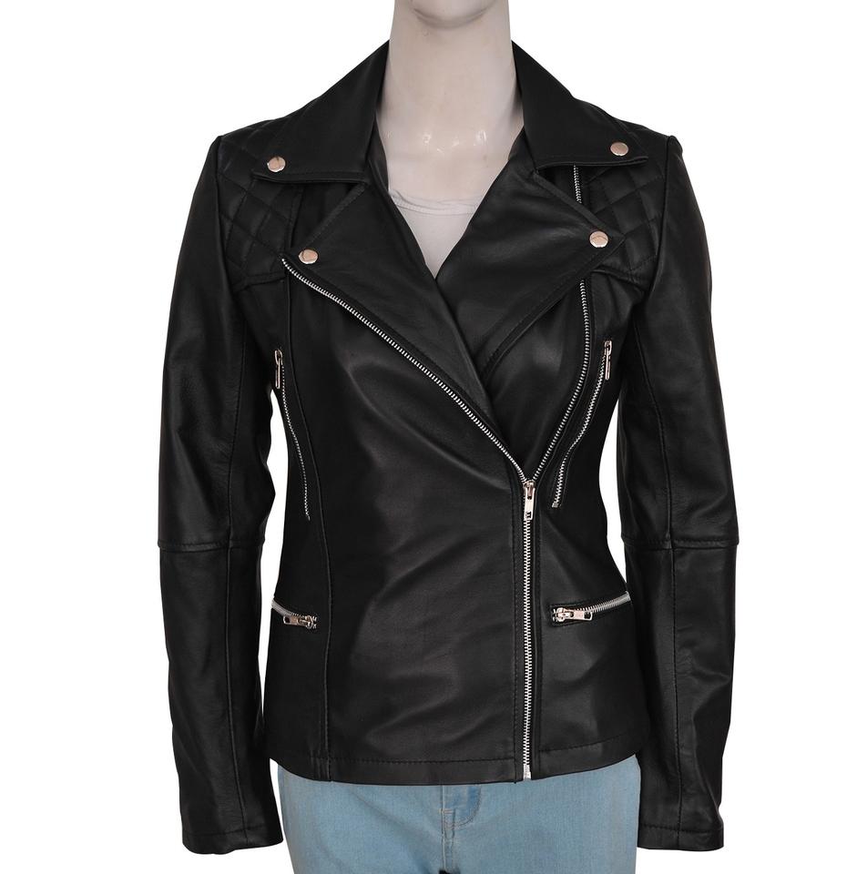 แจ็กเก็ตหนังแท้สีดำมีสไตล์แจ็กเก็ตหนังขนยาวสีดำสำหรับนักขี่จักรยาน