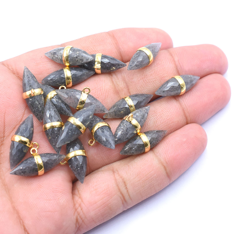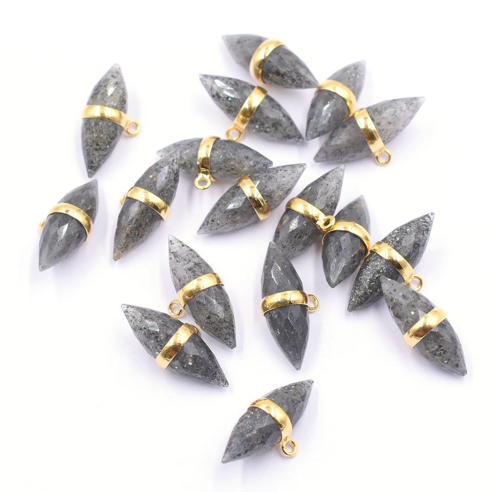 ชื่อสินค้า:จี้รูปทรงรักบี้หินซันสโตนสีดำ ขอบเงิน ชุบทอง